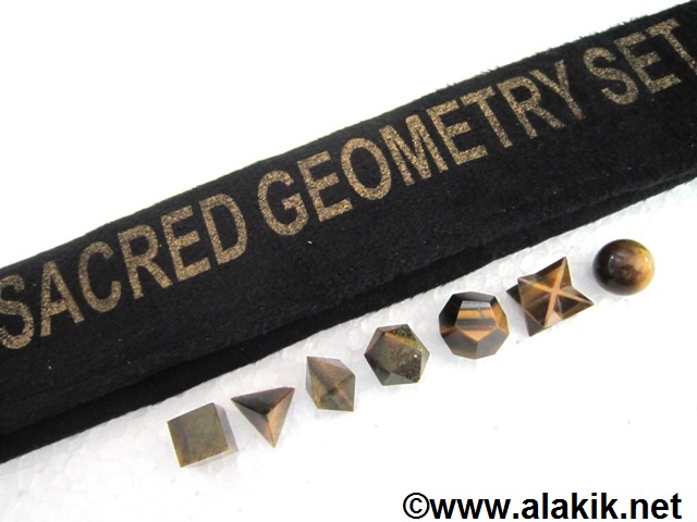 Crystal Quartz 7pcs Geometry Set with Velvet purse